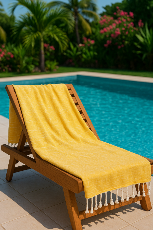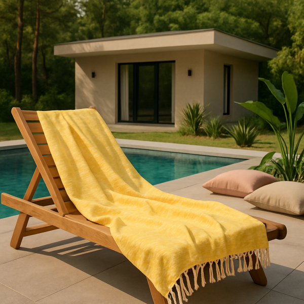 Dieses stilvolle Hamamtuch in warmen Gelbtönen mit modernem grafischem Muster vereint Design und Funktionalität. Gefertigt aus 100 % reiner Baumwolle, besticht es durch seine hohe Saugfähigkeit und angenehme Haptik. Die sonnige Farbgebung verleiht dem Tuch eine lebendige Optik, die sich vielseitig kombinieren lässt. Dank der mitteldicken Webung ist es strapazierfähig, langlebig und dennoch weich auf der Haut. Besonders praktisch für unterwegs: Es ist leicht, schnelltrocknend und lässt sich platzsparend verstauen – ideal für Reisen, den Strand, das Fitnessstudio oder den Wellnessbereich. Auch als dekorative Picknickdecke oder für Yoga einsetzbar. Ein unverzichtbares Accessoire für alle, die hochwertige und stilvolle Heimtextilien schätzen.