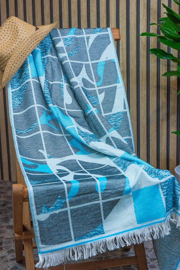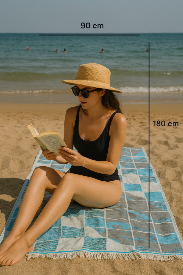 Dieses stilvolle Hamamtuch in eleganten Blau- und Grautönen mit modernem grafischem Muster vereint Design und Funktionalität. Gefertigt aus 100 % reiner Baumwolle, besticht es durch seine hohe Saugfähigkeit und angenehme Haptik. Die harmonische Farbkombination aus Türkis- und Grauschattierungen verleiht dem Tuch eine zeitlose Optik, die sich vielseitig kombinieren lässt. Dank der mitteldicken Webung ist es strapazierfähig, langlebig und dennoch weich auf der Haut. Besonders praktisch für unterwegs: Es ist leicht, schnelltrocknend und lässt sich platzsparend verstauen – ideal für Reisen, den Strand, das Fitnessstudio oder den Wellnessbereich. Auch als dekorative Picknickdecke oder für Yoga einsetzbar. Ein unverzichtbares Accessoire für alle, die hochwertige und stilvolle Heimtextilien schätzen.