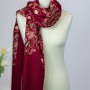 Luxuriöser bordeauxroten Damen-Schal. Handgefertig in India – aus 100% Kaschmirwolle