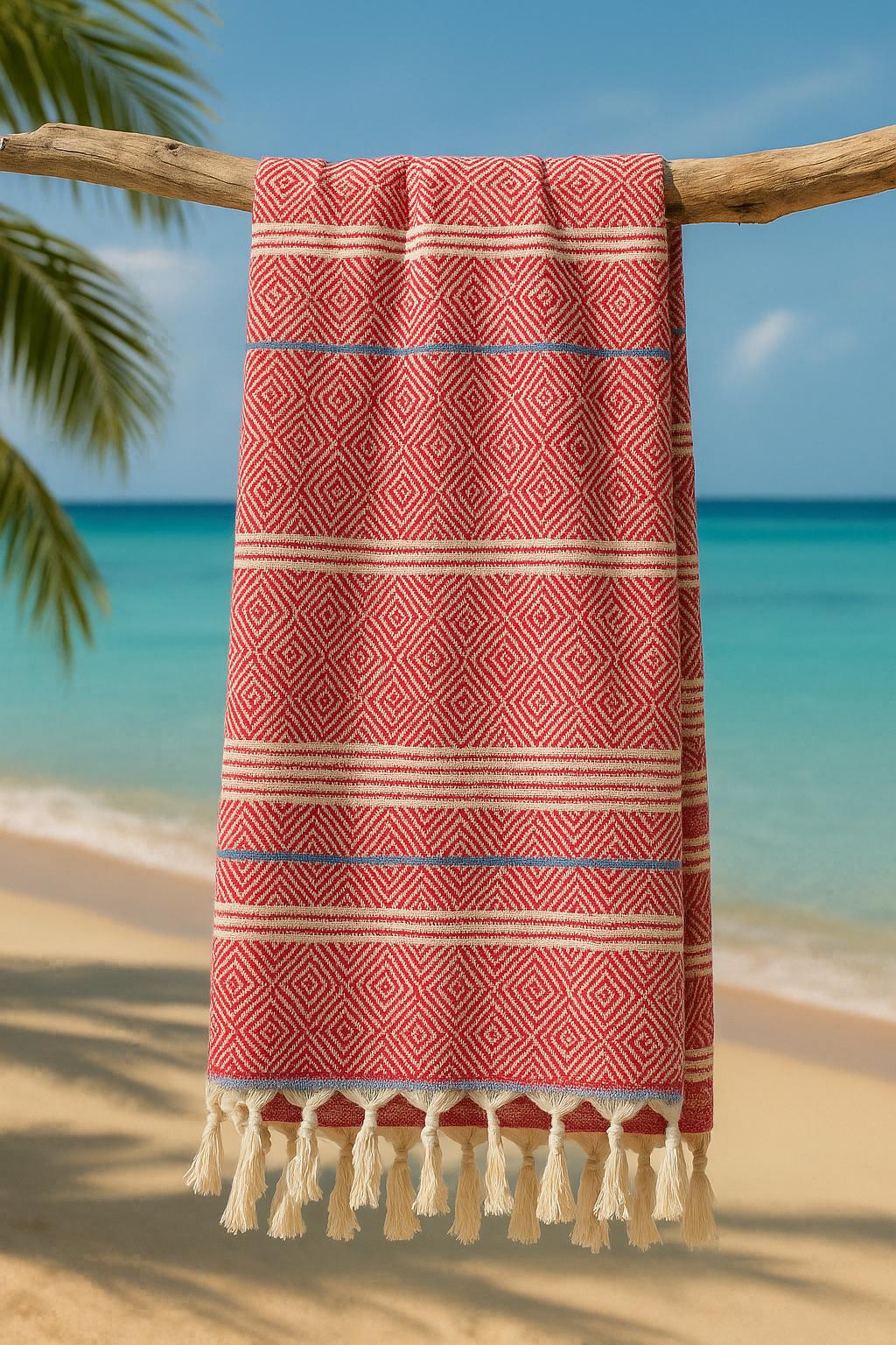 Strand-Sauna Tuch Diamond Red Ideal für Strand, Sauna und Pool