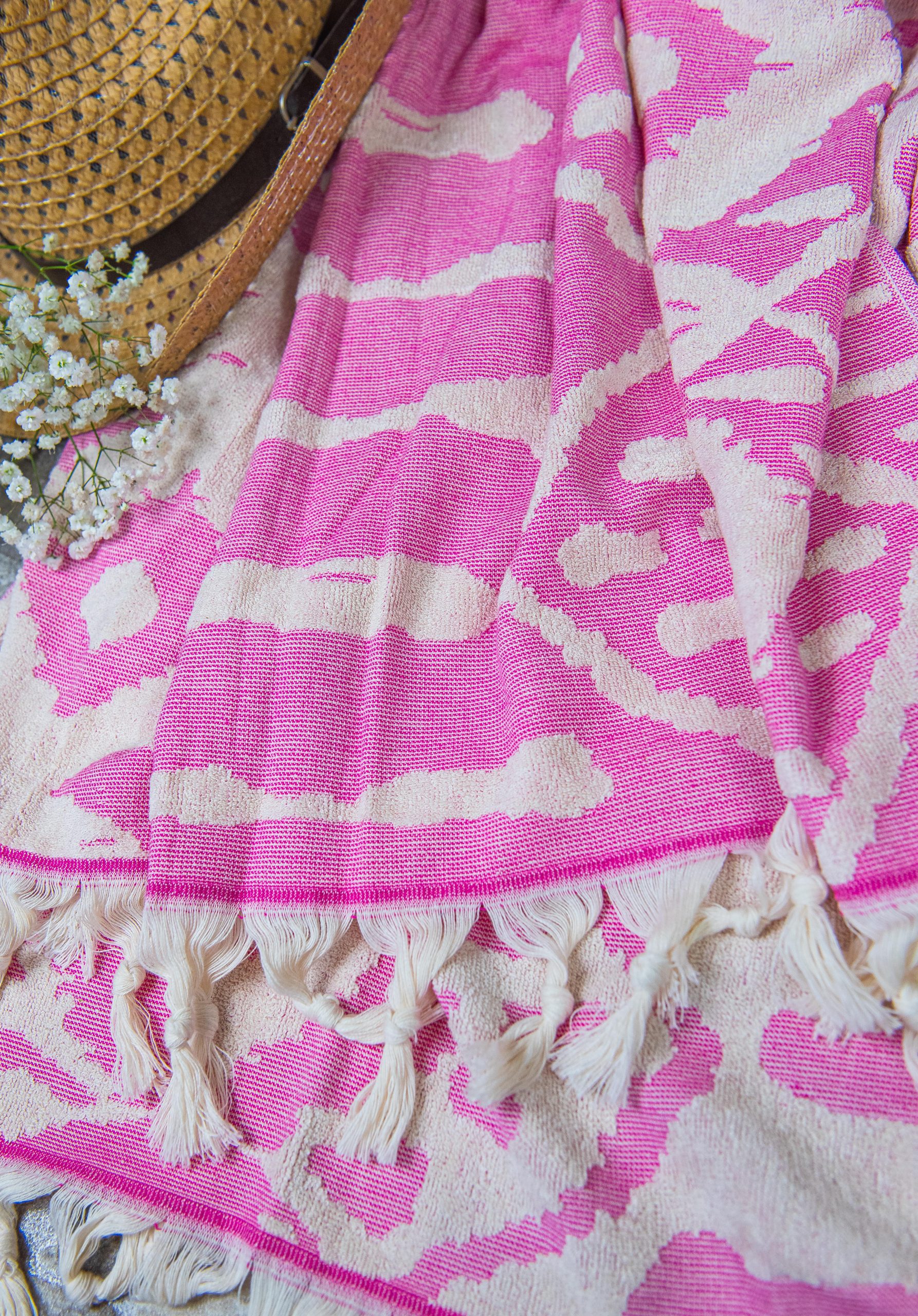 Dieses Hamamtuch in strahlendem Pink ist der perfekte Begleiter für Sauna, Pool, Strand und alle Outdoor-Aktivitäten. Die lebendige, frische Pinkfarbe verleiht jedem Moment eine fröhliche und auffällige Note und bringt Farbe in dein Sommererlebnis. Hergestellt aus 100 % reiner Baumwolle, ist es besonders dünn und leicht, sodass es sich mühelos in jeder Tasche verstauen lässt. Dank seiner schnellen Trocknung ist es immer wieder sofort einsatzbereit und eignet sich ideal für unterwegs. Neben der klassischen Nutzung kann es auch als Yogamatten-Unterlage oder beim Sport verwendet werden. Das zeitlose Design und die attraktive Pinkfarbe machen dieses Hammam-Tuch zu einem unverzichtbaren Accessoire für alle, die Stil, Komfort und eine lebendige, sommerliche Ausstrahlung schätzen.